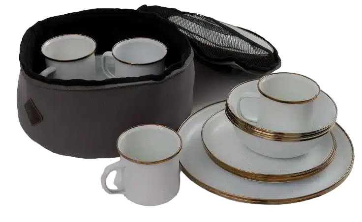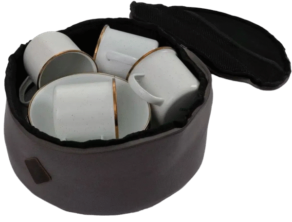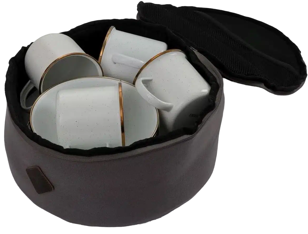 The Barebones Padded Utility Storage Bag is a padded storage bag suitable for carrying lights and (enamel) dishes, among other things. The storage bag is made of waxed canvas. Together with the zipper, this ensures that the bag’s contents stay dry. On the inside of the bag is a four-piece padded divider, allowing safe storage of up to 4 small lights. When you remove the dividers, you can also use the storage bag for carrying your enamelware. Inside the lid is a separate compartment suitable for cutlery, a power bank or charging cables. If necessary, the bag can be re-waxed.