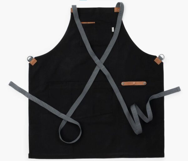 The Barebones Chef Grilling Apron is the only chef apron you will ever need. This modern and durable garment was designed with direct input from chefs, who added unique and convenient details specific to open-flame cooking. The cotton construction means you can do years with this apron. The added front pocket keeps phone, pen or thermometer handy, while the front leather strap allows you to carry a tea towel with you. So it is ideal if you are a fan of outdoor cooking, although it is also great for use in your own kitchen.