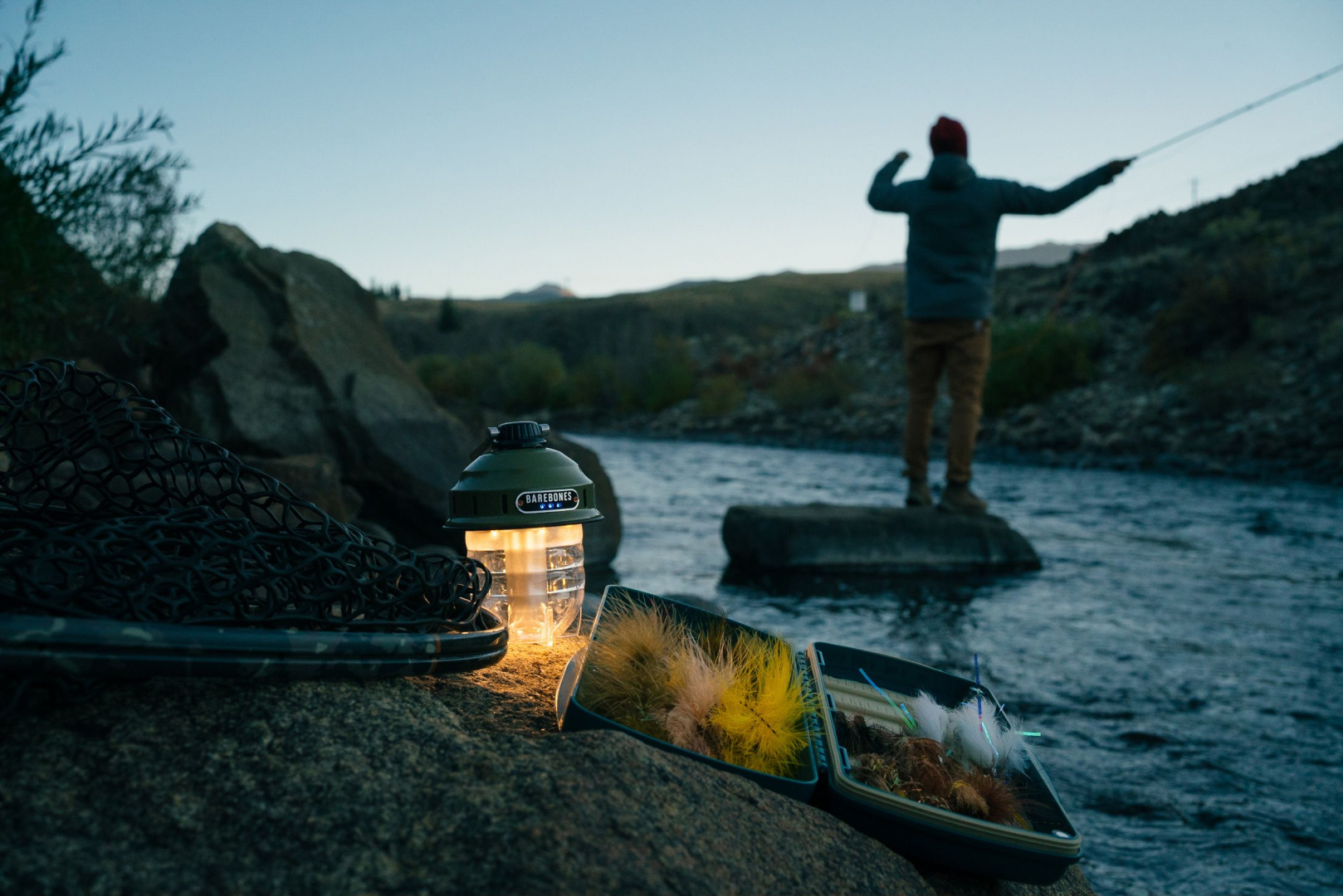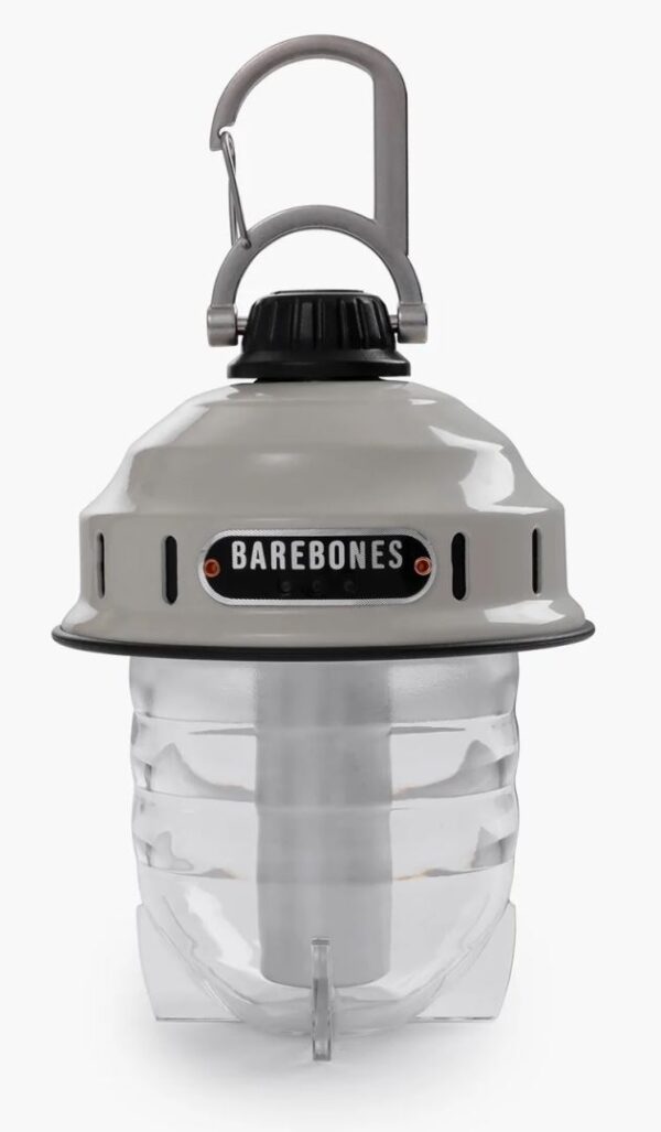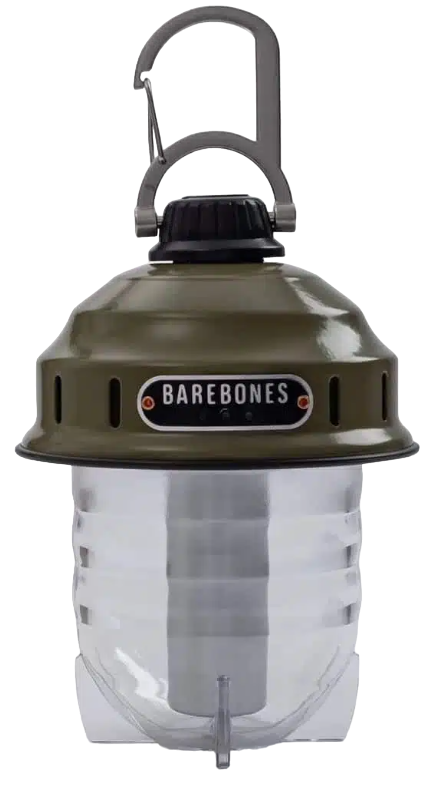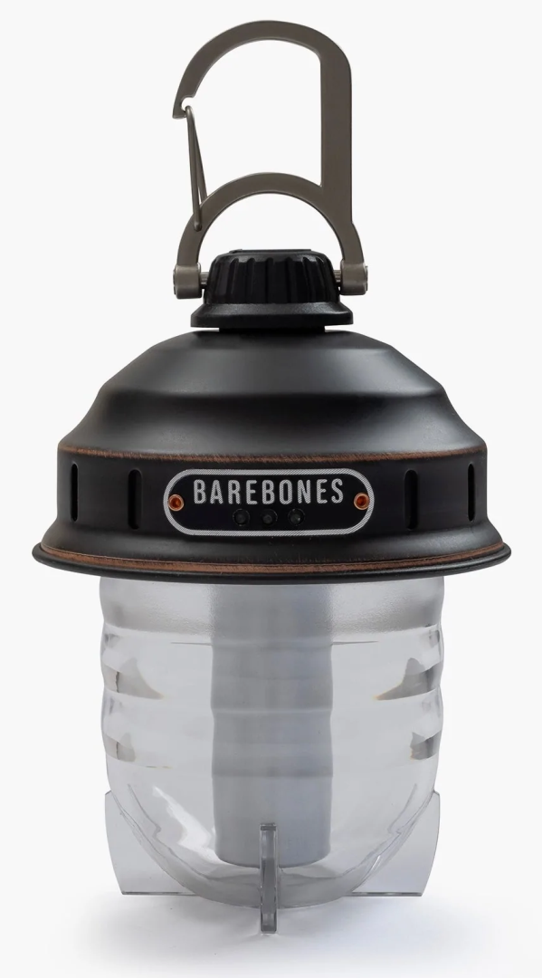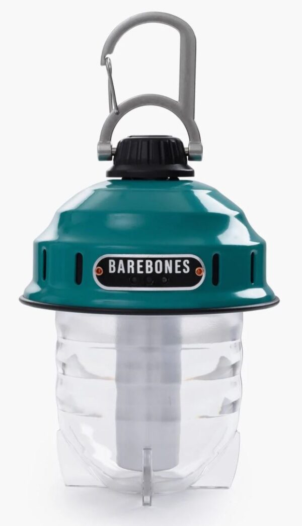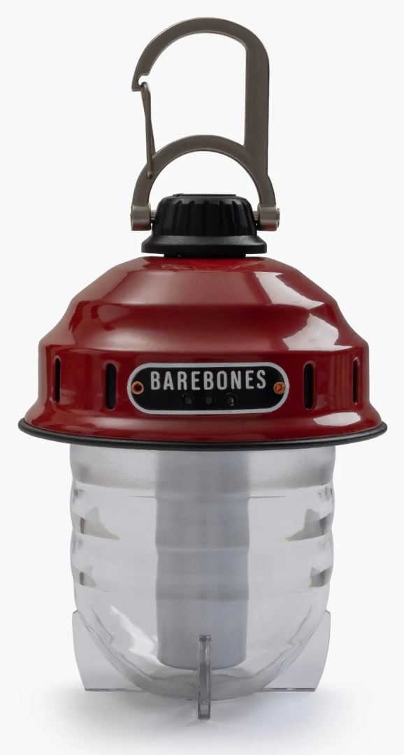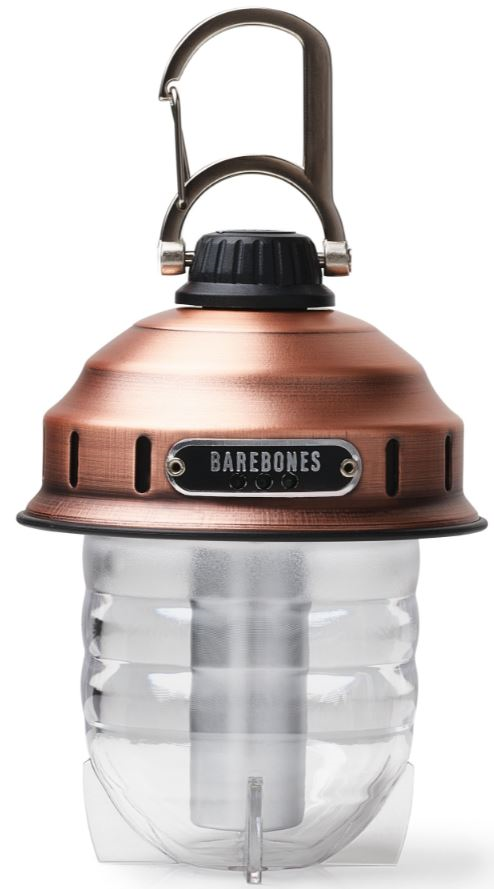 The Barebones Beacon lamp can provide 3 to 200 hours of light. The lamp is rechargeable and recharges in about 4 hours.