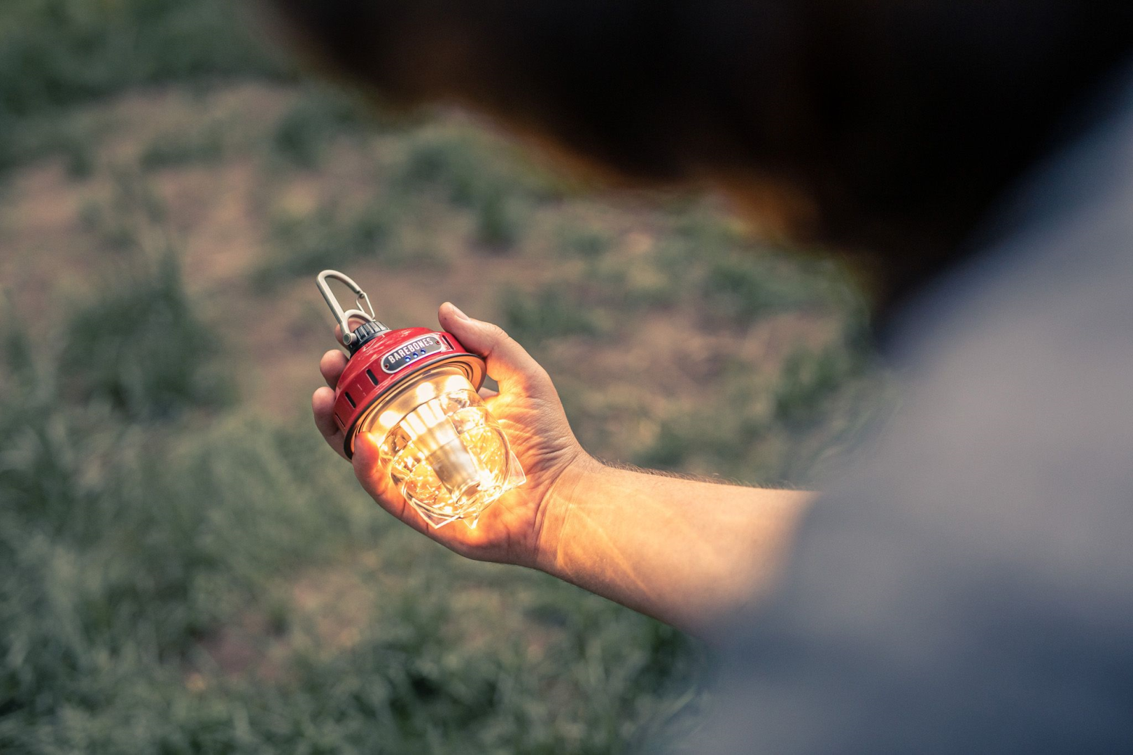 The Barebones Beacon Lamp provides light for a long time and is dimmable.