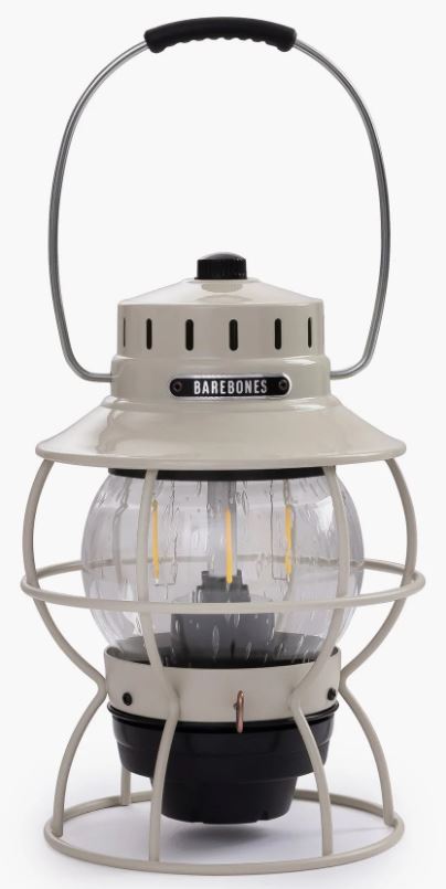 This classic lantern from Barebones is not only beautiful to look at, but also gives off a lot of light. The lamp is ideal for the dining table or camp. The lamp features a handle and a base, making it easy to both carry and set down.