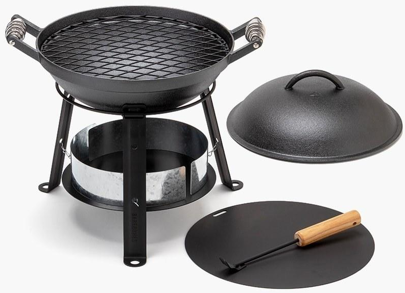 This 8-piece set from Barebones can be used to wok, grill, BBQ and can also be used as a small oven. Furthermore, the Outdoor Iron Oven can be used as a frying pan, frying pan, deep fryer, slow cooker and bouillon pan. The heat-resistant handles are made of stainless steel. A stand is included with the Outdoor Iron Oven. This stand can be used, but without it is also possible.