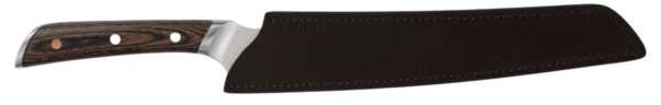 The No.9 Bread Knife is designed for cutting all types of baked goods. The long thin blade makes it easy to cut accurately and evenly. The handle, thanks to its balanced and weighted end, sits well in the hand. In addition, notches for thumb and index finger make it comfortable to hold the knife.