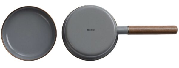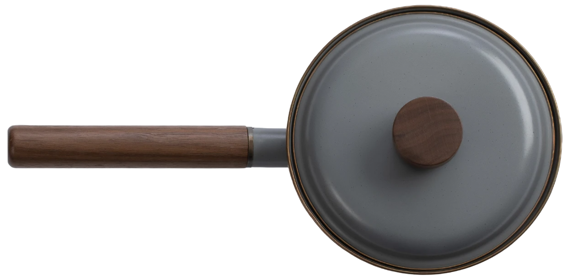 The Barebones Saucepan is an enamel saucepan, suitable for heating sauces, soups etc. The long handle, made of walnut wood, allows the pan to be used safely over open flames. This makes the pan a stylish addition to your indoor and outdoor tableware. Please note that the pan is not suitable for induction.